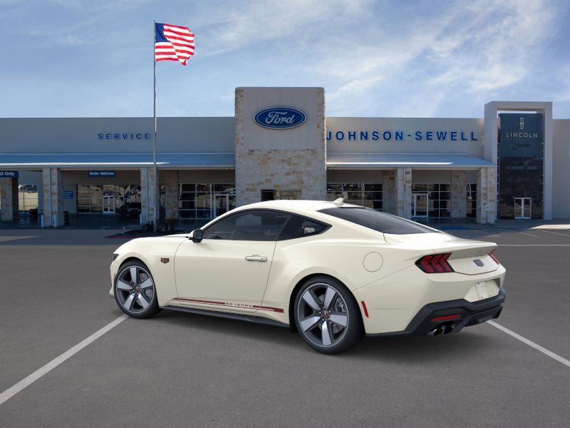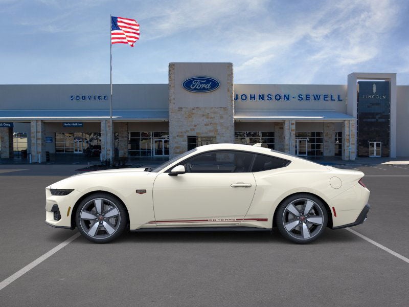Wimbledon White 2025 Ford Mustang GT Premium RWD 6-Speed Manual 5.0L V8 Ti-VCT 20 Wheels, 60th Anniversary Package, Active Anti-Theft System, Anniversary Special Edition Badge, Connected Navigation, Driver Seat & Mirrors Memory, Equipment Group 401A High Package, Ford Co-Pilot360 Assist+, Headlamps w/Black Bezels, Illuminated Door-Sill Scuff Plates, Integrated Turn Signals, Leather-Trimmed Bucket Seats w/Color Accents, Locking Center Console, Painted High Gloss Black Honeycomb Grille, Pre-Collision Assist w/Automatic Emergency Braking, Security Package, Silver Painted Mirror Caps, Wheel Locking Kit, Wheels: 20 x 9 Bright Machined Aluminum.