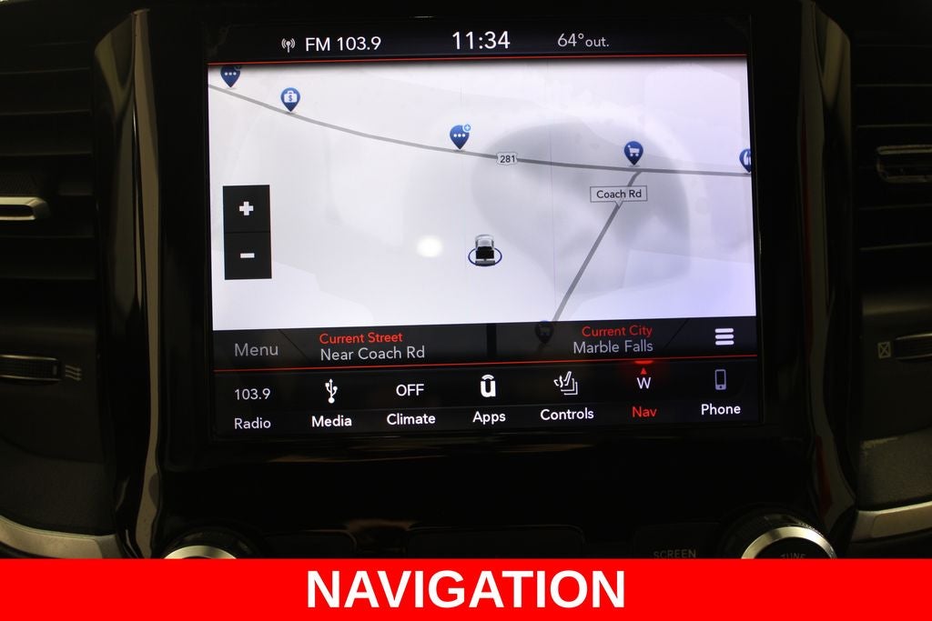 Fresh Detail, RWD, 1-Year SiriusXM Radio Service, 2 USB Full Function/Charge Only Media Hub, 3.21 Rear Axle Ratio, 8.4 Touchscreen Display, Air Conditioning ATC w/Dual Zone Control, Alloy wheels, Apple CarPlay, Auto-Dimming Exterior Driver Mirror, Auto-Dimming Rear-View Mirror, Big Horn IP Badge, Big Horn Non-BSG Level 2 Group w/Media Hub (DISC), Class IV Receiver Hitch, Cluster 7.0 TFT Color Display, Dampened Tailgate, Exterior Mirrors Courtesy Lamps, Exterior Mirrors w/Supplemental Signals, Foam Bottle Insert (Door Trim Panel), For More Info, Call 800-643-2112, Front LED Fog Lamps, Glove Box Lamp, Google Android Auto, GPS Navigation, Heated Front Seats, Heated Steering Wheel, Integrated Center Stack Radio, LED Reflector Headlamps, LED Taillamps, Lone Star Badge, Lone Star Package, ParkSense Front/Rear Park Assist w/Stop, Power 4-Way Driver Lumbar Adjust, Power 8-Way Driver Seat, Power Adjustable Pedals, Power Heated Fold Away Mirrors, Power-Folding Mirrors, Premium Lighting Group, Quick Order Package 25Z Big Horn/Lone Star, Radio: Uconnect 4 w/8.4 Display, Rear Dome w/On/Off Switch Lamp, Rear Power Sliding Window, Rear Window Defroster, Remote Start System, Security Alarm, Single Disc Remote CD Player, SiriusXM Satellite Radio, Steering Wheel Mounted Audio Controls, Sun Visors w/Illuminated Vanity Mirrors, Universal Garage Door Opener, Wheels: 20 x 9 Aluminum Chrome Clad.