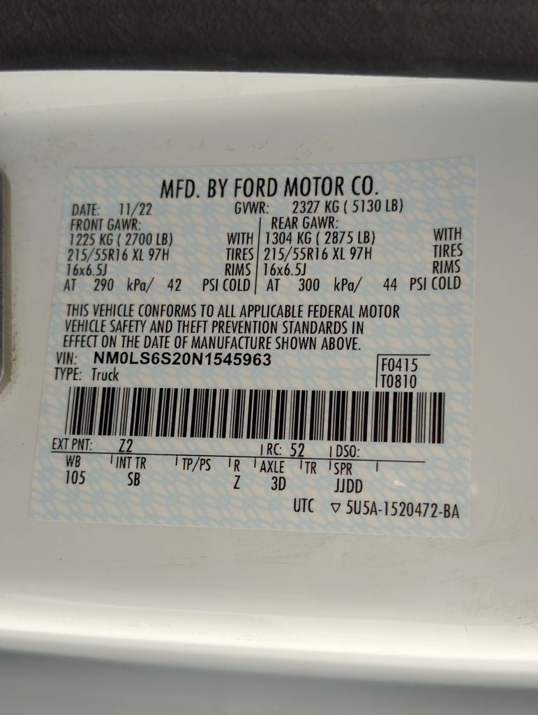 CARFAX One-Owner. Odometer is 40379 miles below market average! Clean CARFAX. Certified. Frozen White 2022 Ford Transit Connect XL FWD 8-Speed Automatic I4