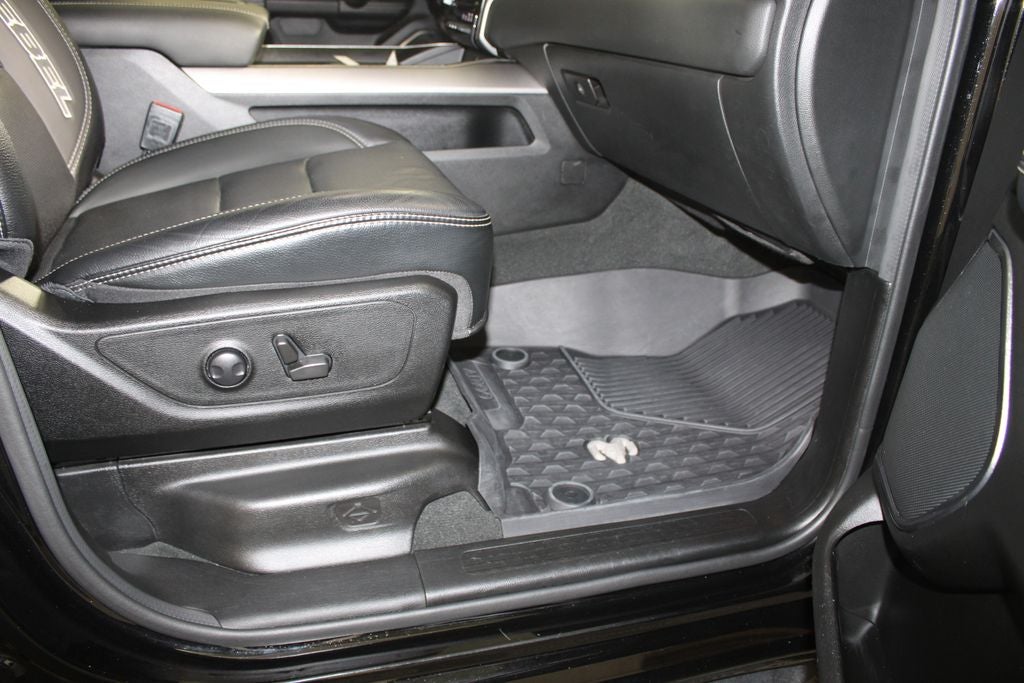 One Owner Carfax, Fresh Detail, 115V Auxiliary Rear Power Outlet, 2-Door Passive Entry, Front Door Locks, 2nd Row In Floor Storage Bins, 4G LTE Wi-Fi Hot Spot, 8.4 Touchscreen Display, Air Conditioning ATC w/Dual Zone Control, Alloy wheels, Apple CarPlay, Auto-Dimming Exterior Driver Mirror, Bed Utility Group, Black Exterior Mirrors, Black Front Bumper w/Black Plate, Black Premium Power Mirrors, Bluetooth® Handsfree Phone & Audio, Body Color Door Handles, Connectivity - US/Canada, Convex Wide-Angle Mirror Insert, Digital Rearview Mirror, Dome Dual LED Reading Lamp, Dual-Pane Panoramic Sunroof, Exterior Mirrors Courtesy Lamps, Exterior Mirrors w/Heating Element, Exterior Mirrors w/Supplemental Signals, Foam Bottle Insert (Door Trim Panel), For Details, Visit DriveUconnect.com, Global Telematics Box Module (TBM), Google Android Auto, GPS Antenna Input, Grille Surround 2 Black Texture 3 Black, Heads-Up Display, Heated Front Seats, Heated Steering Wheel, Integrated Center Stack Radio, LED CHMSL Lamp, Media Hub w/2 Charge Only USBs, MOPAR 4 Adjustable Cargo Tie-Down Hooks, Navigation System, Night Edition, Overhead LED Lamps, ParkSense Front/Rear Park Assist w/Stop, Pick-Up Box Lighting, Power Adjustable Pedals, Power-Folding Mirrors, Premium Overhead Console, Quick Order Package 27W Rebel, Radio: Uconnect 5 W w/8.4 Display, Rain Sensitive Windshield Wipers, RAM Grille Badge - Black, Rear Dome w/On/Off Switch Lamp, Rear Window Defroster, Rebel Level 2 Equipment Group, Remote Start System, Security Alarm, SiriusXM Radio Service, SiriusXM Satellite Radio, Sun Visors w/Illuminated Vanity Mirrors, Technology Group, Universal Garage Door Opener, USB Host Flip, Wheels: 18 x 8.0 Gloss Black.