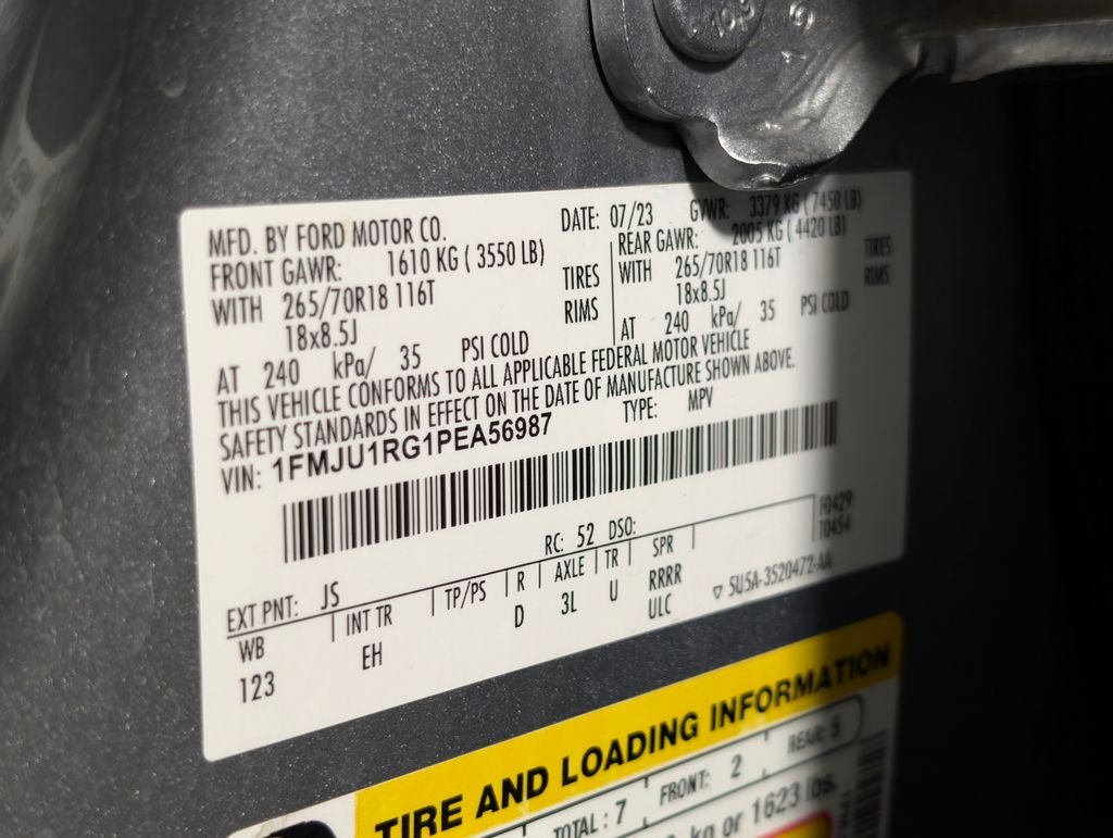Fresh Detail, 4WD, 15.5 LCD Capacitive Touchscreen, 2nd Row Leather Trimmed Pwr-Folding Captain's Chairs, 2nd Row Power Windows, Alloy wheels, Ambient Lighting, Equipment Group 501A High Package, Front & Rear Upgraded Carpet Floor Mats, Heated & Ventilated Leather Front Captain's Chairs, Heated Steering Wheel, Heavy-Duty Trailer Tow Package, Instrument Panel Cluster, Integrated Trailer Brake Controller, Navigation system: Connected Navigation, Panoramic Vista Roof, Power-Folding Sideview Mirrors w/Autofold, Pro Trailer Backup Assist, Radio: B&O Sound System by Bang & Olufsen, Rain-Sensing Wipers (Front Only), SiriusXM w/360L, SYNC 4 w/Enhanced Voice Recognition, Vinyl Center Console, Wheels: 18 Ebony-Painted.
