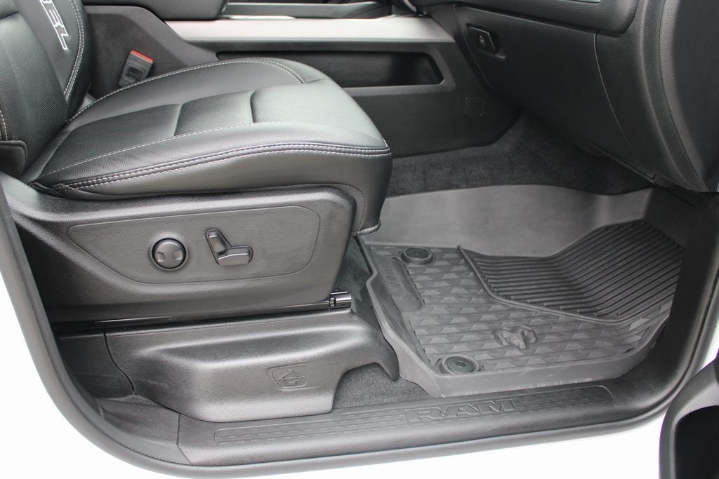 One Owner Carfax, Fresh Detail, 115V Auxiliary Rear Power Outlet, 12-Way/1-Way Trailer Connector, 2-Door Passive Entry, Front Door Locks, 4G LTE Wi-Fi Hot Spot, Accent Color Door Handles, Accent Color Premium Power Mirrors, Accent Color Tailgate Handle, Alloy wheels, Apple CarPlay, Auto Power-Folding Mirrors, Auto-Dimming Exterior Driver Mirror, Auto-Dimming Exterior Passenger Mirror, Bed Utility Group, Black Painted Exterior Mirrors Caps, Connected Travel & Traffic Services, Connectivity - US/Canada, Convex Wide-Angle Exterior Mirror Insert, Dome Dual LED Reading Lamp, Driver Seat Memory, Dual Wireless Charging Pad, Dual-Pane Panoramic Sunroof, Exterior 115V AC Outlet, Exterior Mirrors Approach Lamps, Exterior Mirrors Courtesy Lamps, Exterior Mirrors w/Heating Element, Exterior Mirrors w/Memory, Exterior Mirrors w/Supplemental Signals, Forward & Reverse Utility Lights, Front Passenger Interactive Display, Google Android Auto, GPS Antenna Input, GPS Navigation, harman/kardon 19 Speaker Premium Sound, HD Radio, Heads-Up Display, Heated Second Row Seats, Integrated Voice Command w/Bluetooth®, LED CHMSL Lamp, Manual Folding Exterior Mirrors, Manual Telescoping Mirrors, Media Hub w/2 Charge Only USBs, Mirror Clearance/Running Lights, MOPAR 4 Adjustable Cargo Tie-Down Hooks, MOPAR Spray In Bedliner, Navigation System, Off-Road Information Pages, Power Adjust 8-Way Front Passenger Seat, Power Adjustable Pedals w/Memory, Power Tailgate, Power Telescoping Mirrors, Power-Adjustable Convex Aux Mirrors, Proximity Approach/Departure Lamps, Quick Order Package 21W Rebel, Radio: Uconnect 5 Nav w/14.4 Display, Radio/Driver Seat/Mirrors/Pedals Memory, Rain Sensitive Windshield Wipers, Rear Window Defroster, Rebel Level 2 Equipment Group, Security Alarm, SiriusXM w/360L, Smartphone As A Key Capable, Technology Group, Towing Technology Group, Trailer Brake Control, Trailer Hitch Line-Up Assist, Trailer Light Check, Trailer Reverse Steering Control, Trailer Tire Pressure Monitoring System, Trailer Tow Group, Trailer Tow Mirrors, USB Host Flip, Wheels: 18 x 8.0 Painted Mid-Gloss Black.